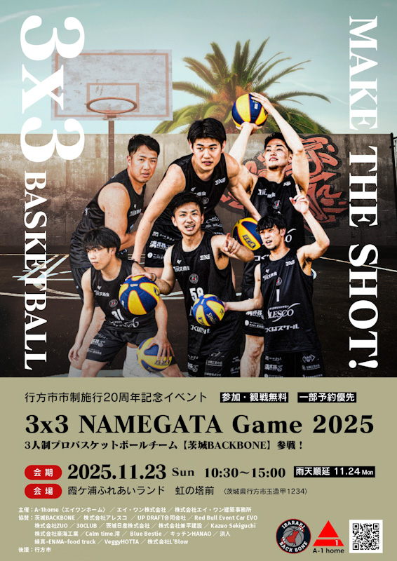 行方市市制施行20周年を記念して、地域の皆さんが一緒に楽しめるバスケットボール体験イベントを開催します!