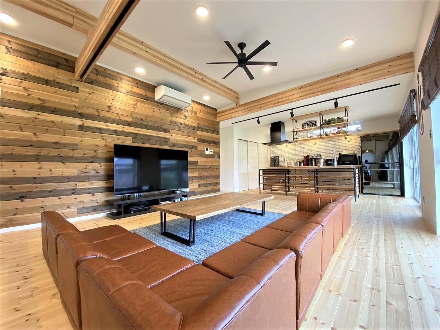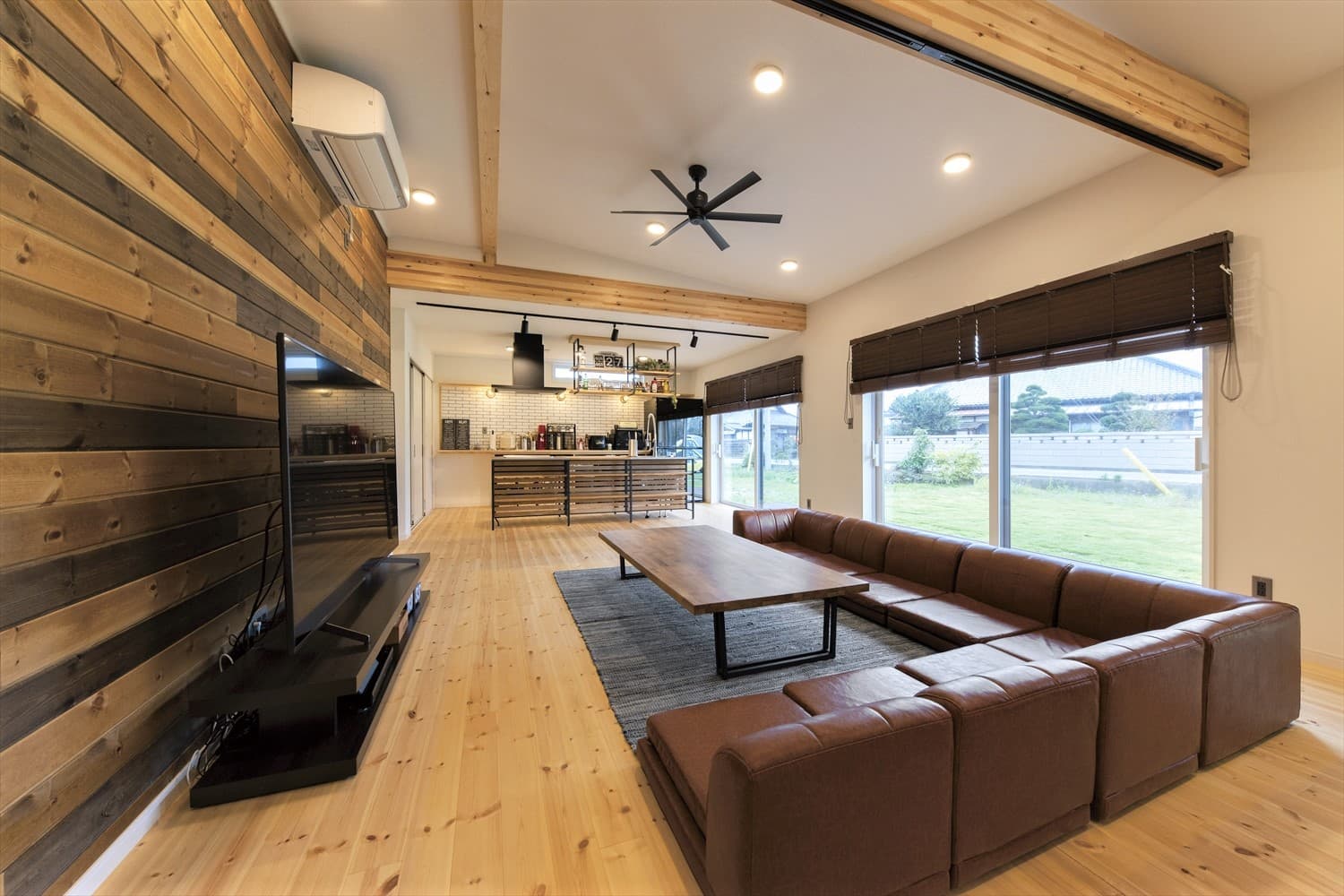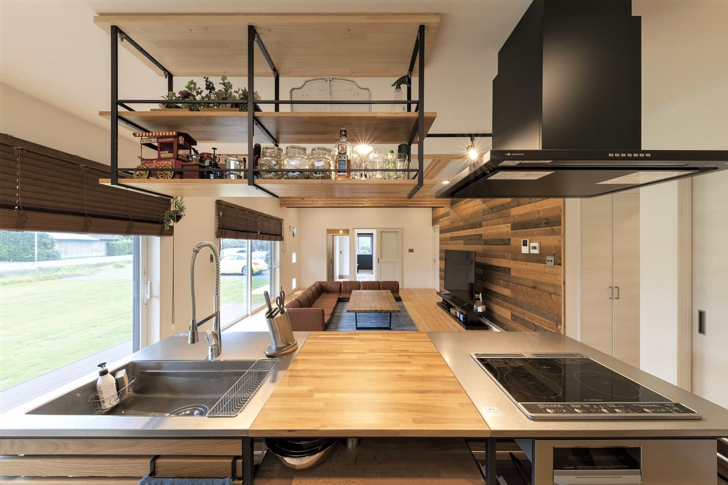 解放感溢れるリビングとアイランドキッチンがおしゃれな平屋です。