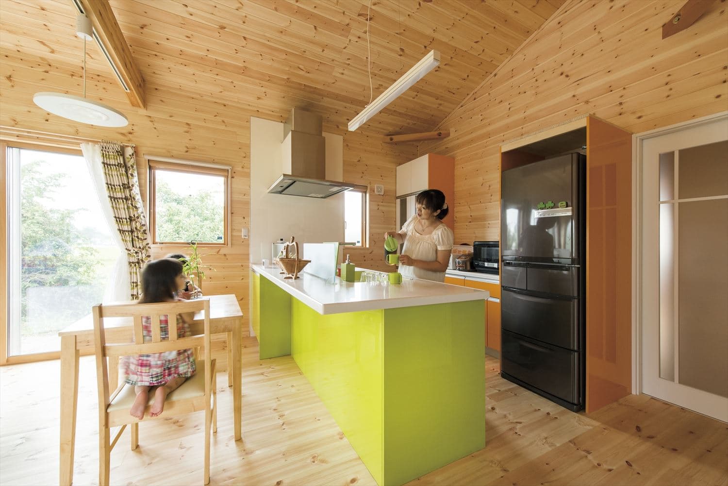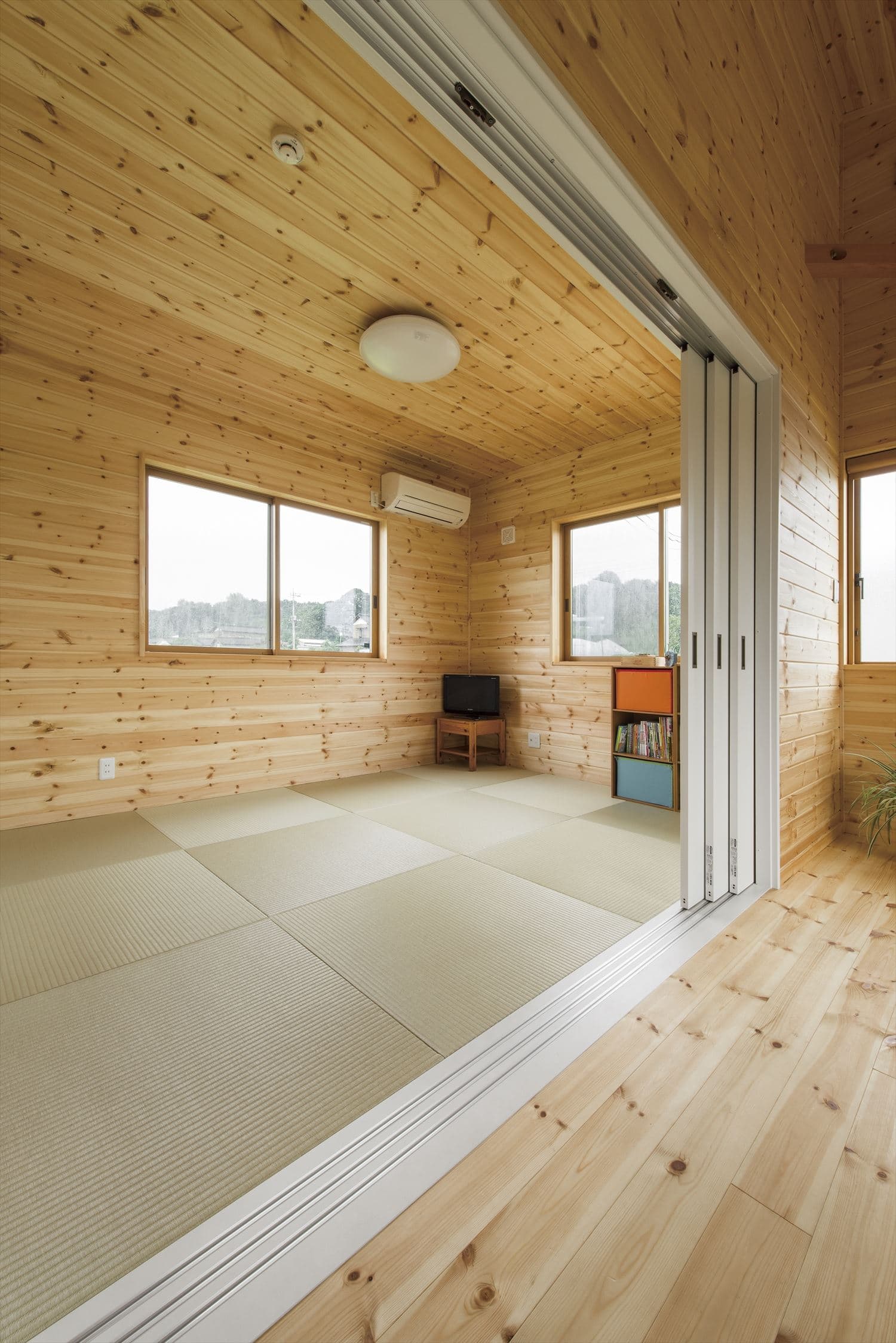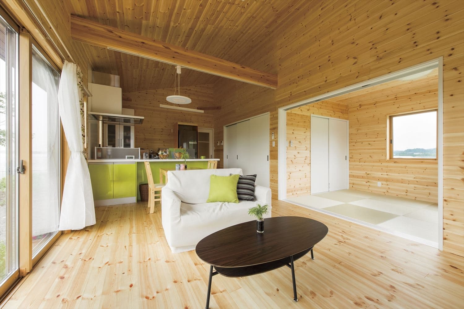 見守りのしやすい平屋の良さと、子供の心と身体の成長を育む無垢材の良さを持った子育て住宅です。