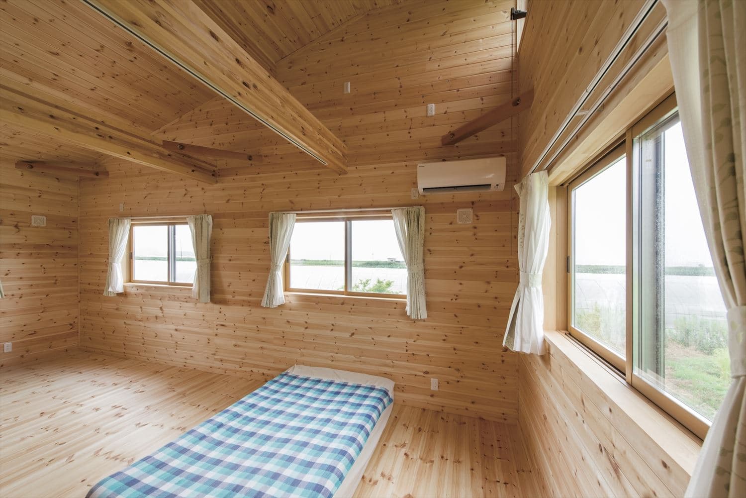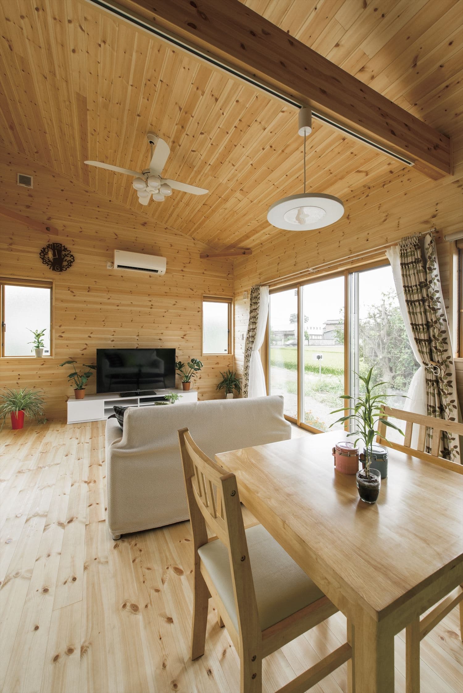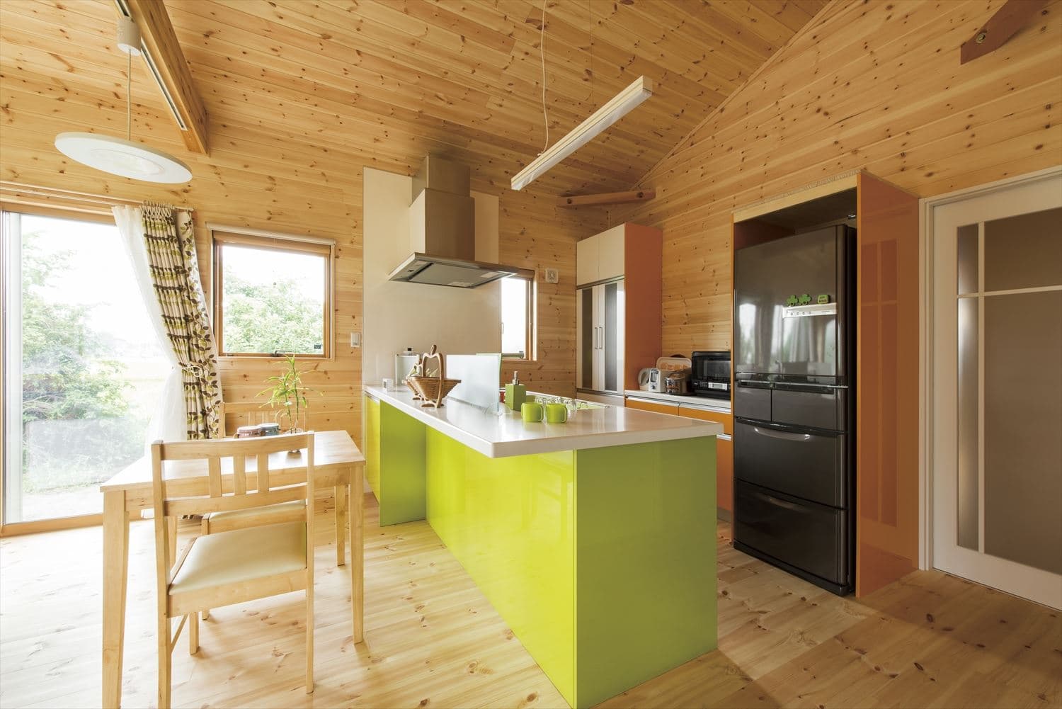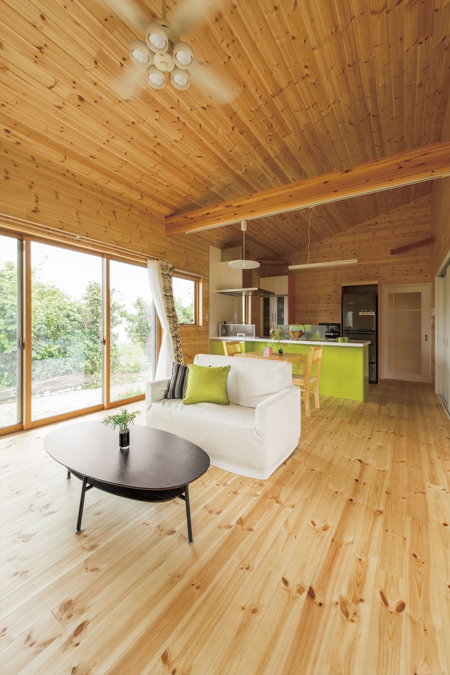 見守りのしやすい平屋の良さと、子供の心と身体の成長を育む無垢材の良さを持った子育て住宅です。