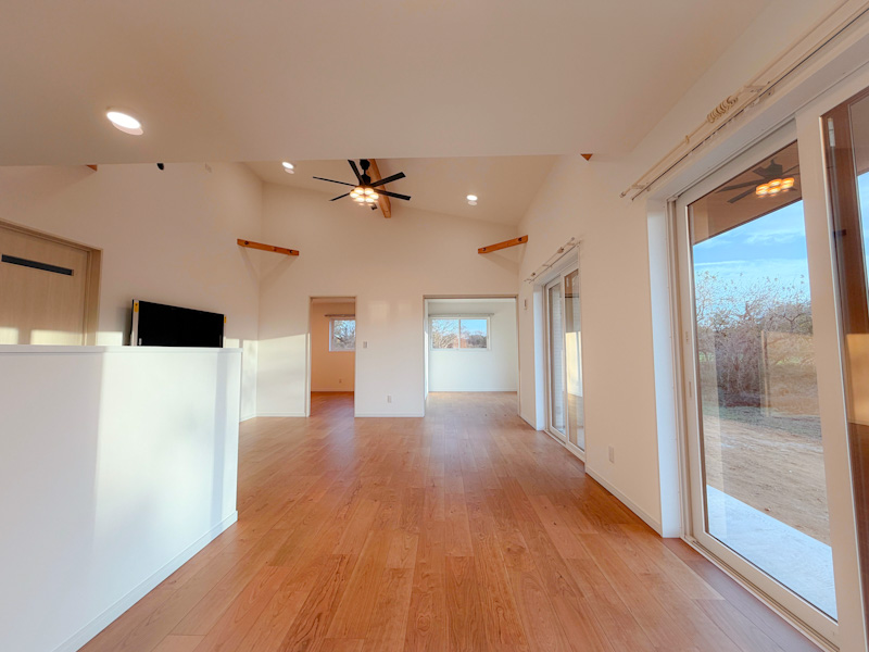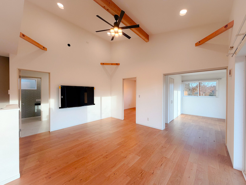 ・居室のドアを引き戸にし、普段は開けておくことでLDKとつながる大空間に。