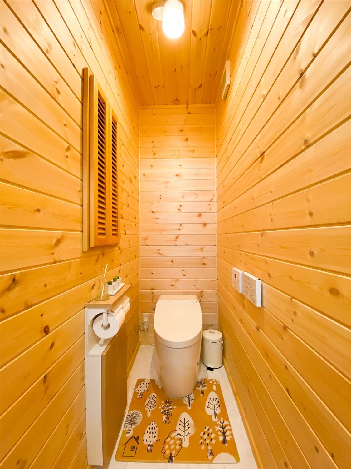 家事導線を考慮した平屋のトイレ|笠間市の注文住宅,ログハウスのような木の家を低価格で建てるならエイ・ワン
