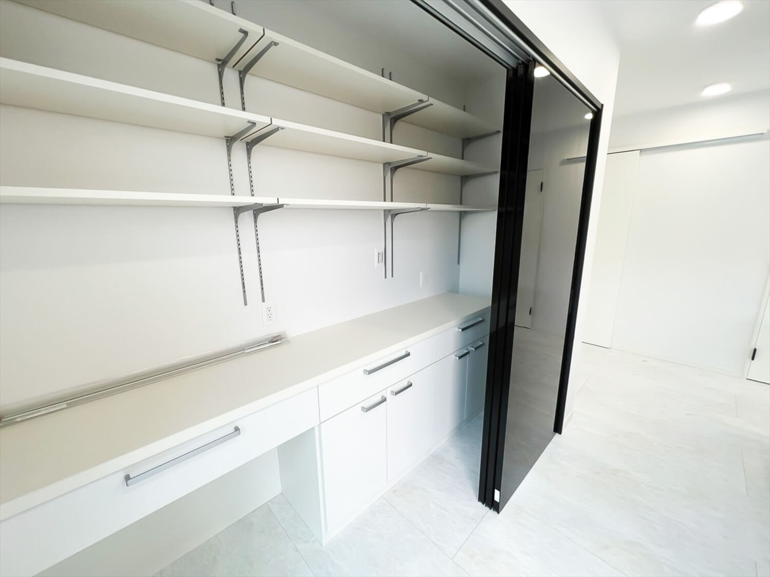 2階建て, シンプルモダンハウス, アイランドキッチン 水戸市の二階建て|延べ床面積66坪のモノトーンコーディネート二階建て 延べ床面積219.45㎡(66.38坪) 価格帯本体価格 3,000~3,500万円(税抜) LDKの広さ35帖 nLDKタイプ4LDK2S+SIC+2WIC+バルコニー 仕様その他 竣工年2022年